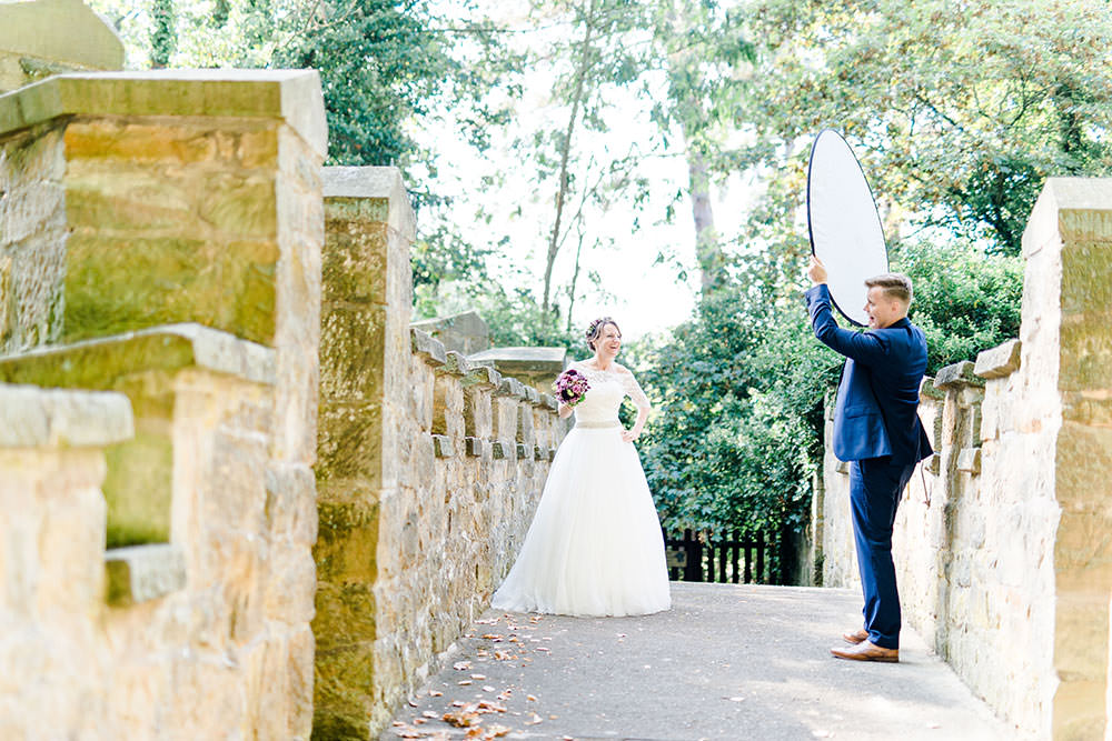 Nach der Trauung ging es zum eigentlichen Fotoshooting mit dem Paar. Da muss sogar mal der Bräutigam als Assistent herhalten. Eine kleine aber sehr feine Session die ich mit dem Brautpaar am Schloss fotografiert habe. Klein deshalb, weil in Fritzlar schon die Gäste auf uns gewartet haben. Am Nachmittag stand aber noch ein Fotowalk in Fritzlar auf dem Programm.